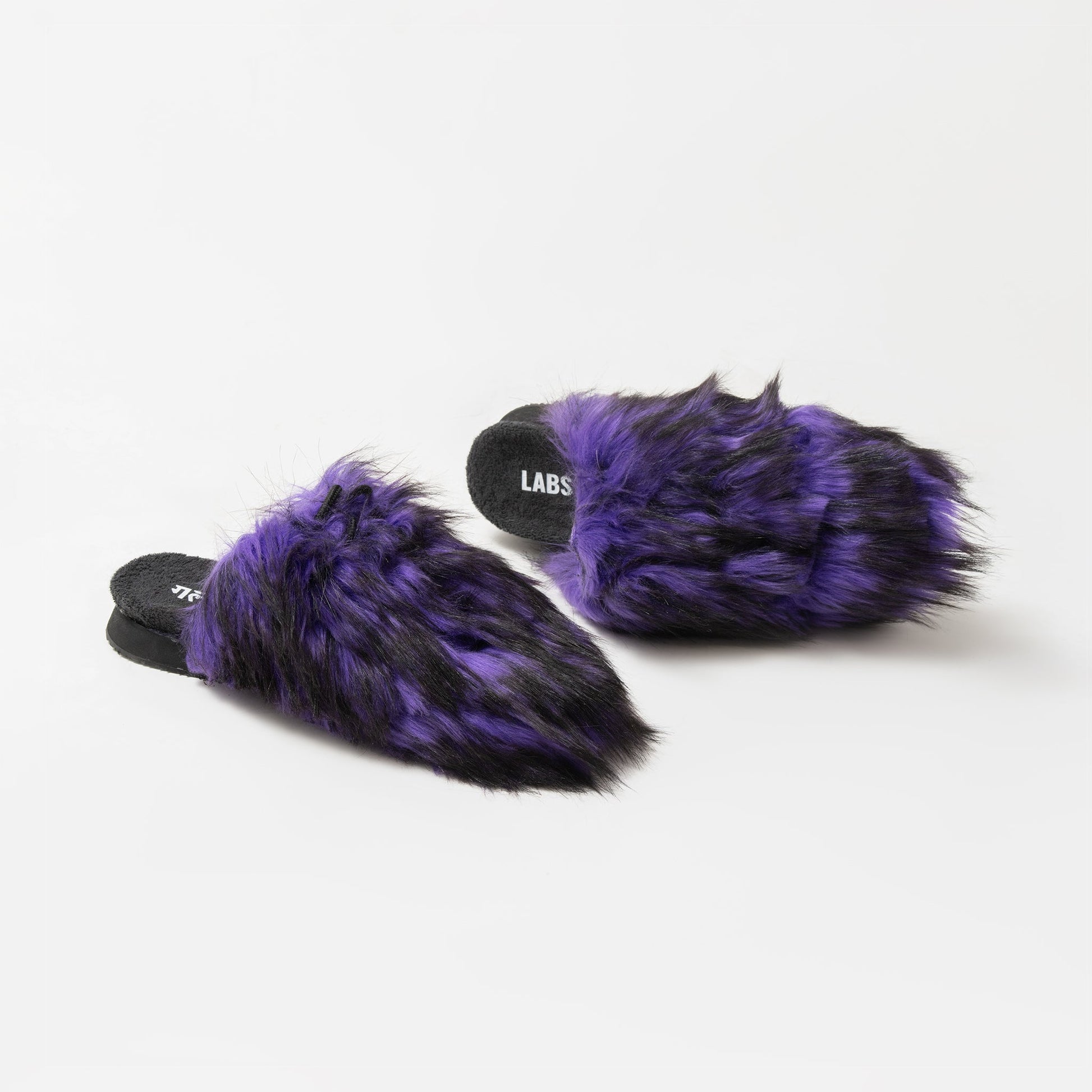Rich purple-and-black faux fur upper