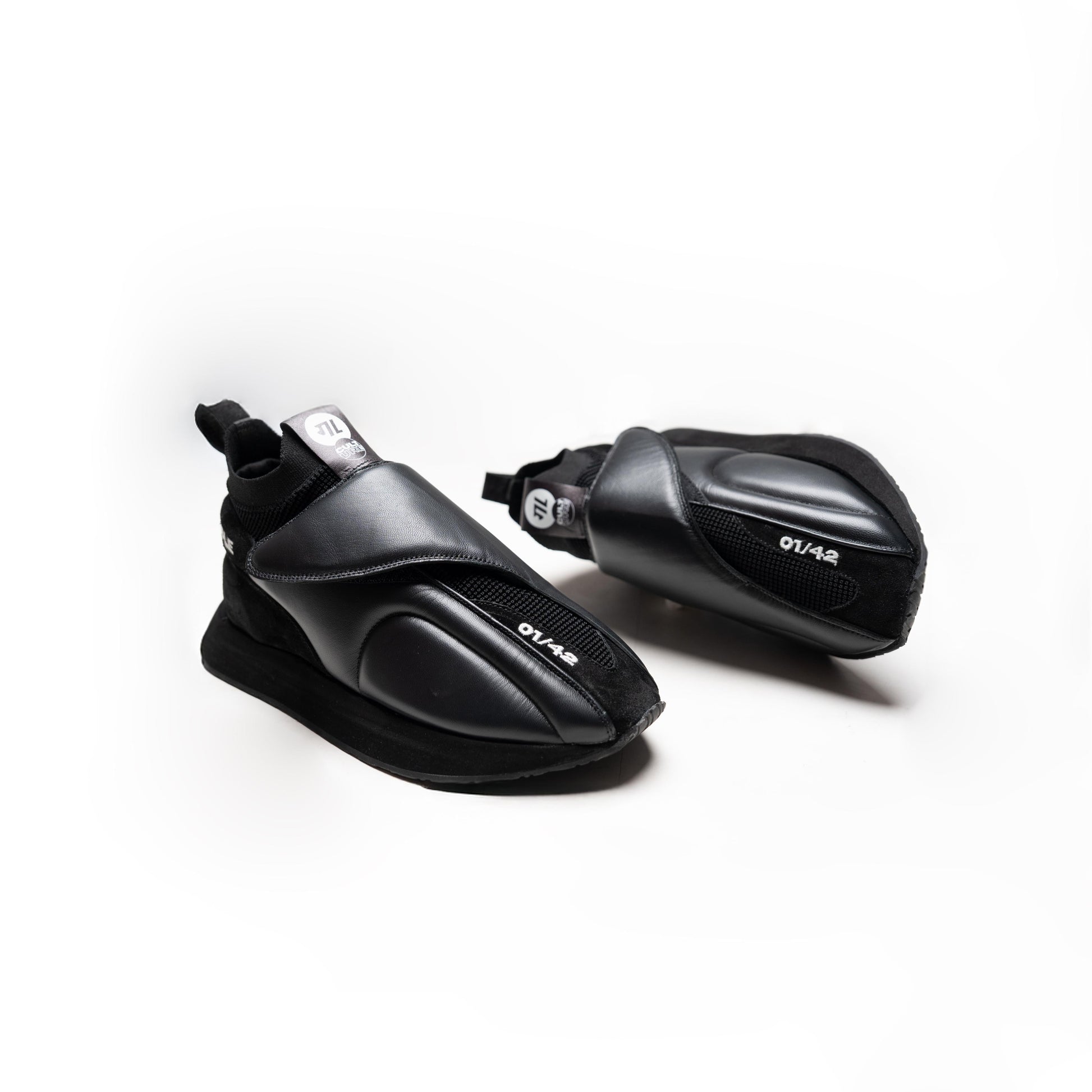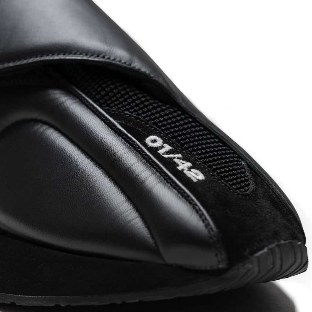 - Delicate off-white machine embroidery on the toe, numbering each pair for exclusivity.